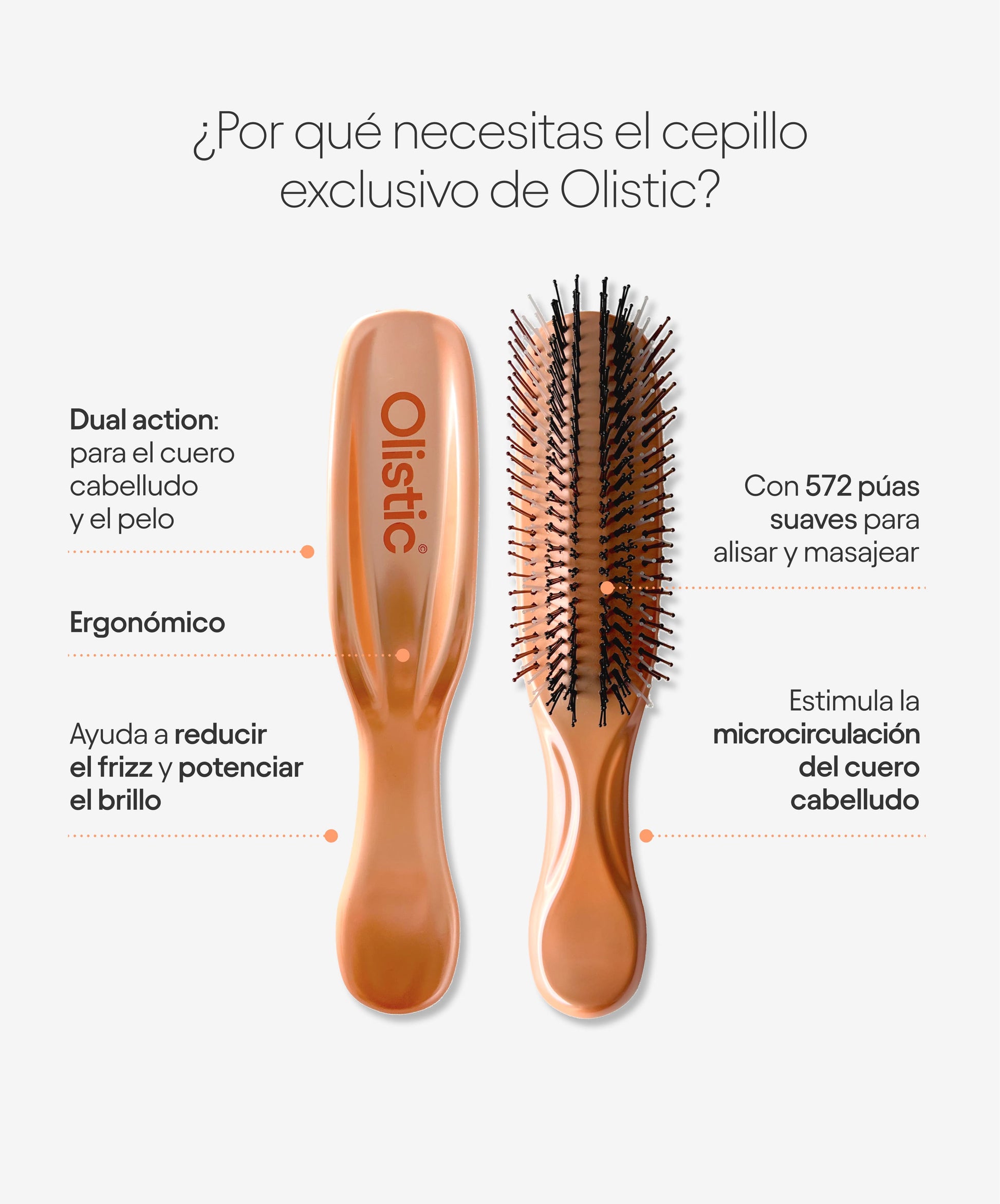 Perfecto para usar en tu rutina diaria de cuidado capilar, el cepillo iBrush complementa tu tratamiento Olistic, al ayudar a que los nutrientes lleguen de forma más eficaz al folículo.
