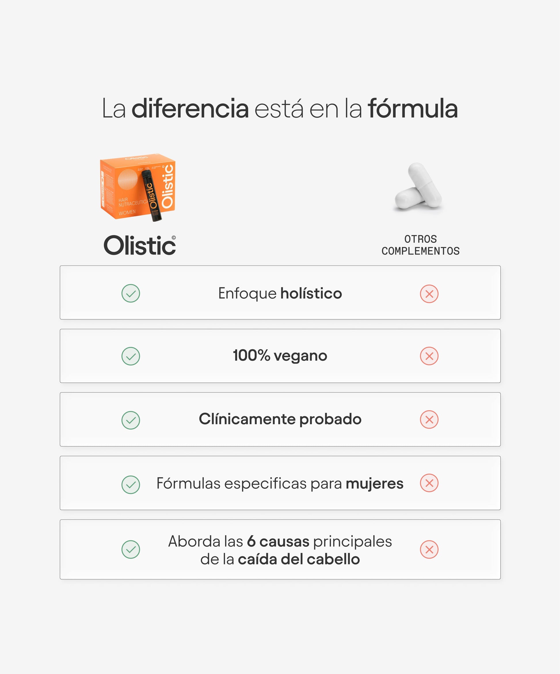 Olistic destaca por su fórmula integral y científicamente probada, diseñada para actuar sobre las principales causas de la caída del pelo, adaptándose a cada etapa vital.